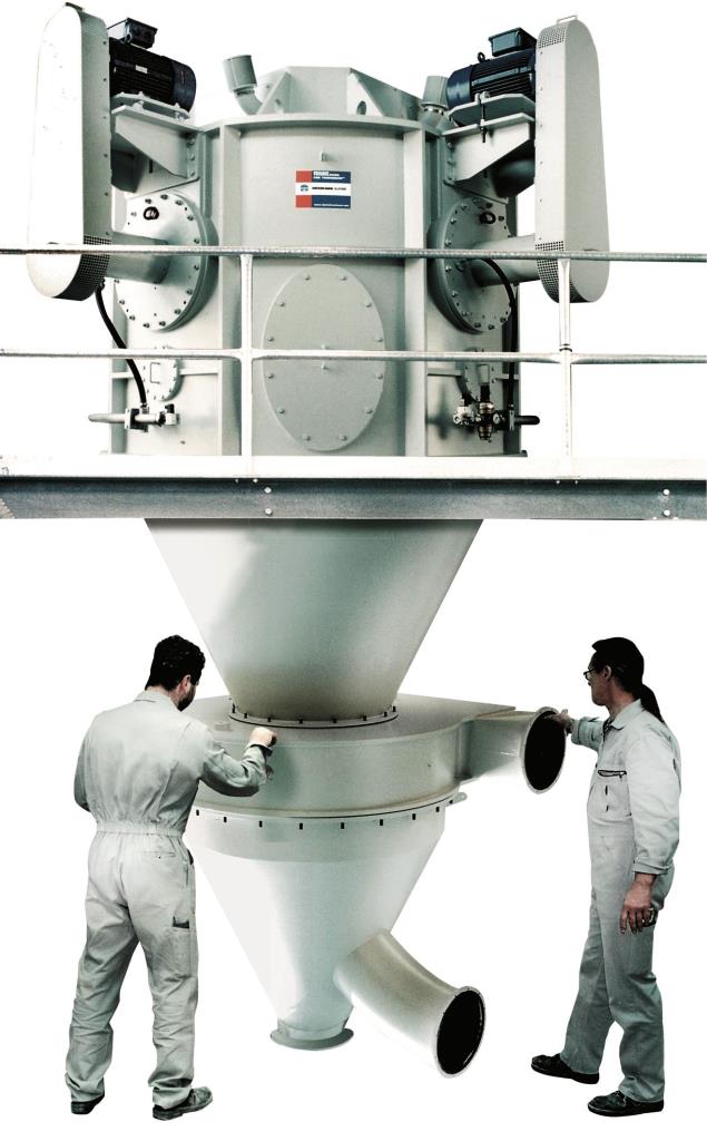 産品通(tōng)過旋轉閥進料,或者在氣流分(fēn)級機(jī)的(de)情況下(xià),夾帶在分(fēn)級空(kōng)氣中。 産品≠細度通(tōng)過使用(yòng)變頻(pín)器(qì)調節分(fēn)級輪速度來(lái)控制(zhì)。 分(fēn)級輪的(de)水(shuǐ)平布∞置意味著(zhe)即使是(shì)“困難”的(de)産品也(yě)可(kě)以毫無問(wèn)題地(dì)處理(lǐ)。≈
